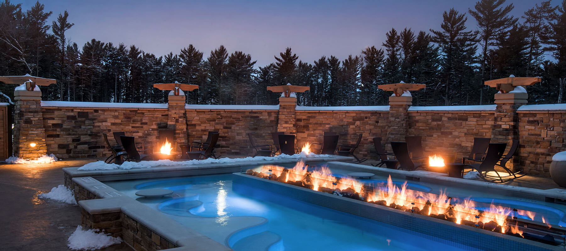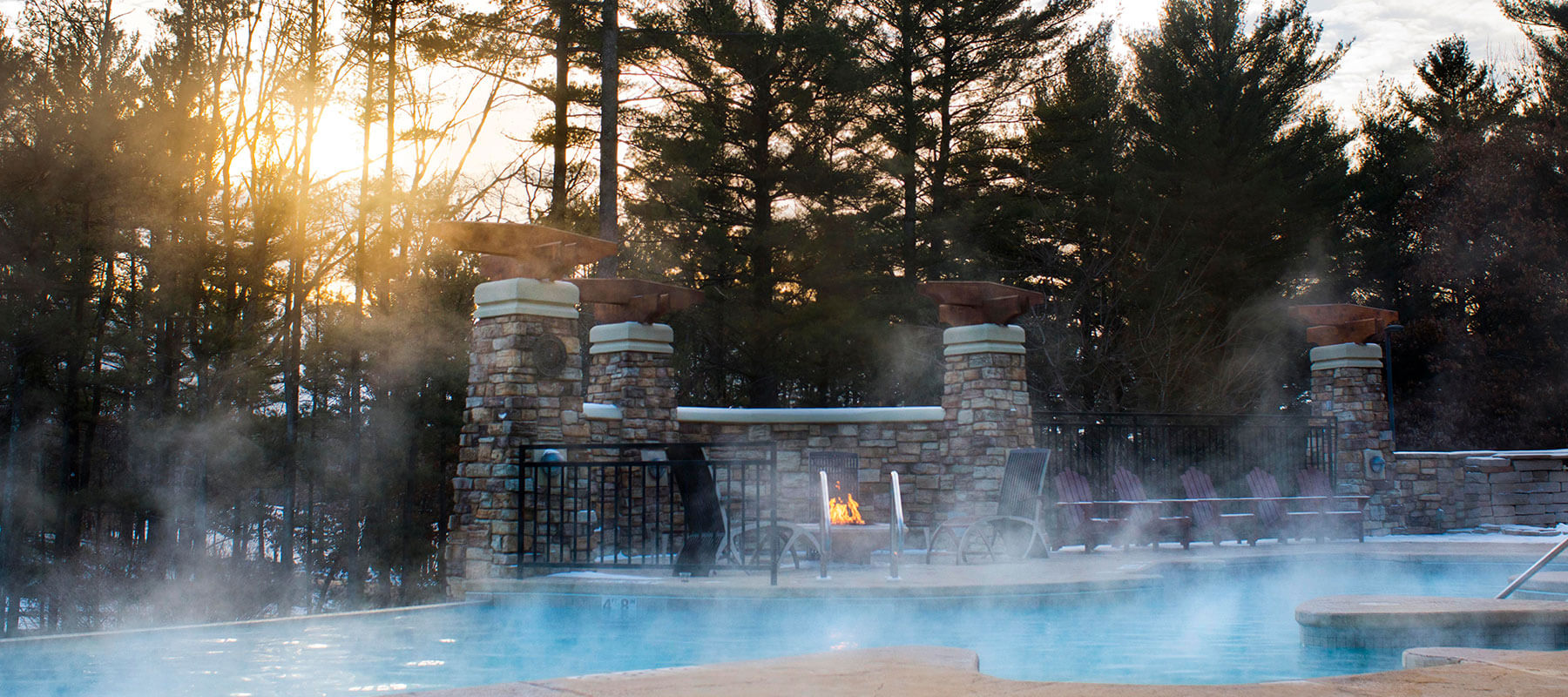 Our outdoor pool outside of the Cambrian Oasis is the perfect spot to lounge on warm days. Bask in the sun on one of the lounging ledges, a perfect spot for reading and sunbathing. The beautiful Sundara S in the center of the pool doubles as facing benches as a space to reconnect. This pool is heated to 84-degrees and is open seasonally from around May – October.