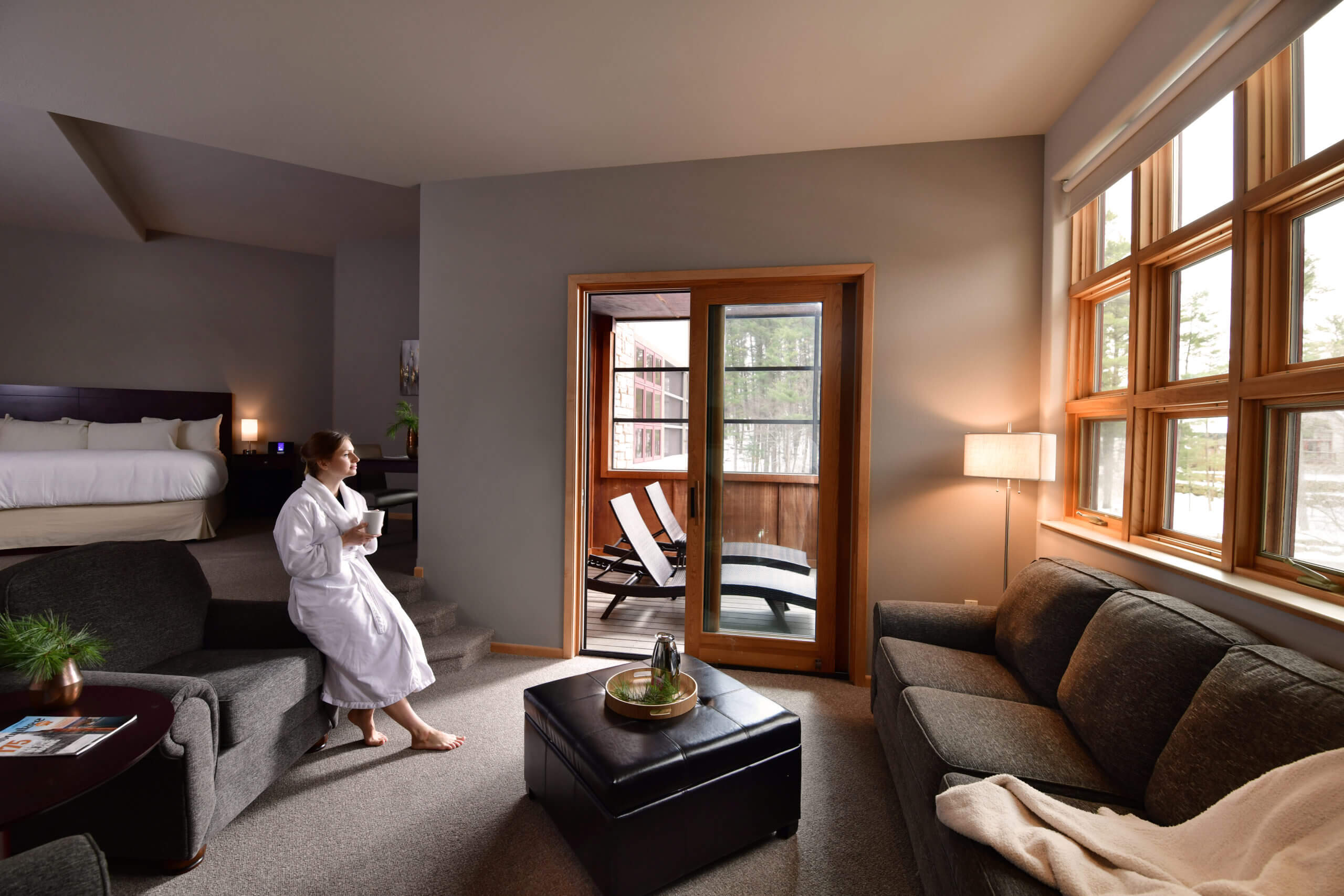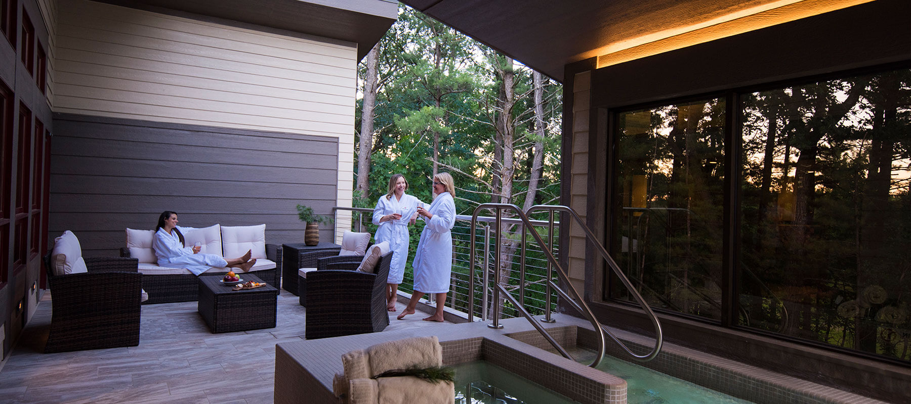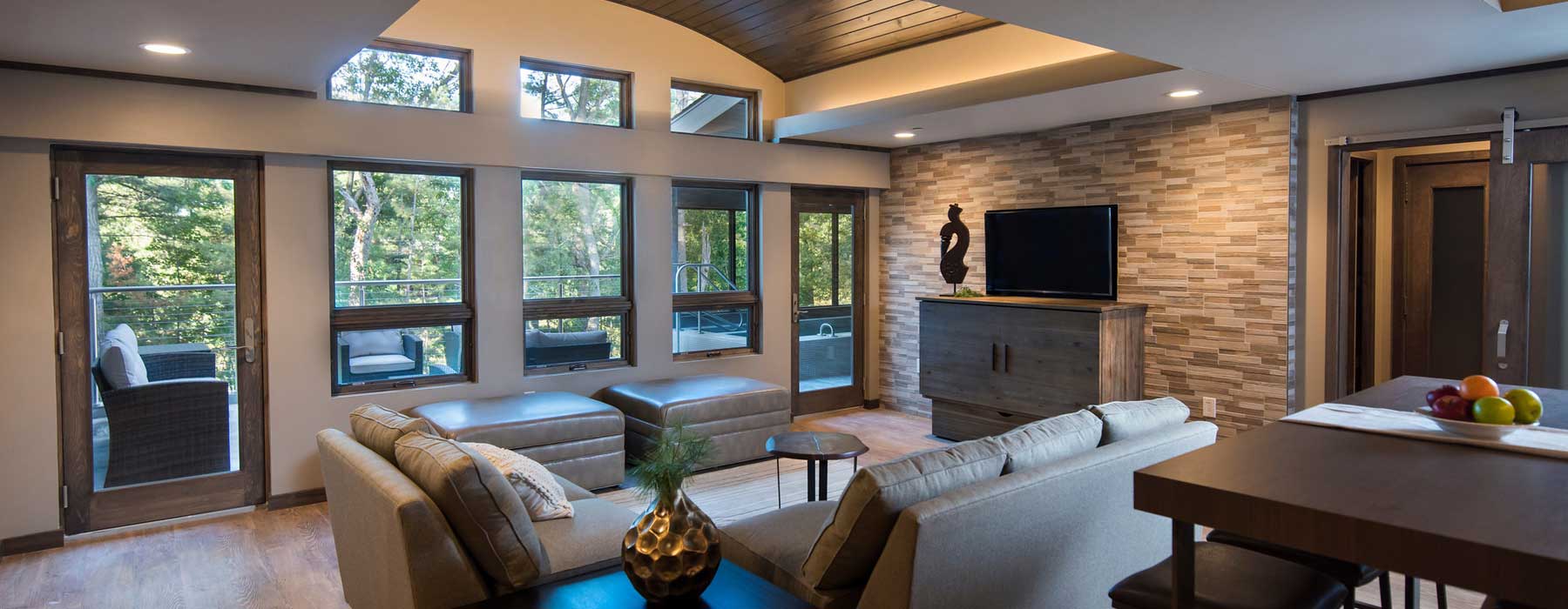 Sundara is nestled in a 26-acre pine forest on the scenic outskirts of Wisconsin Dells, with Lake Delton directly across the street and Wild Rock Golf Club adjacent to our grounds. A serene, winding road leads you to Sundara, allowing time to take in awe-inspiring views of the towering white pines and beautiful Wisconsin stone outcroppings.